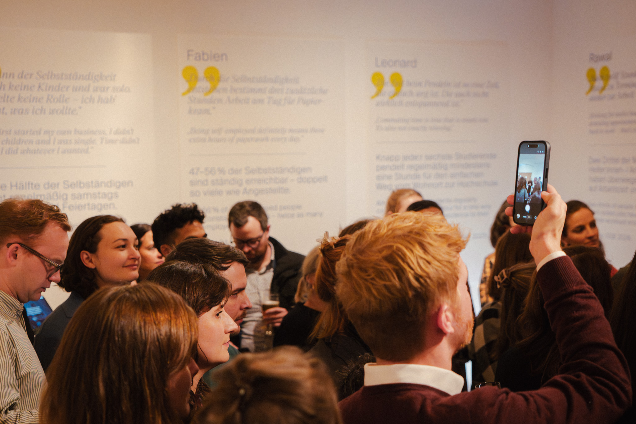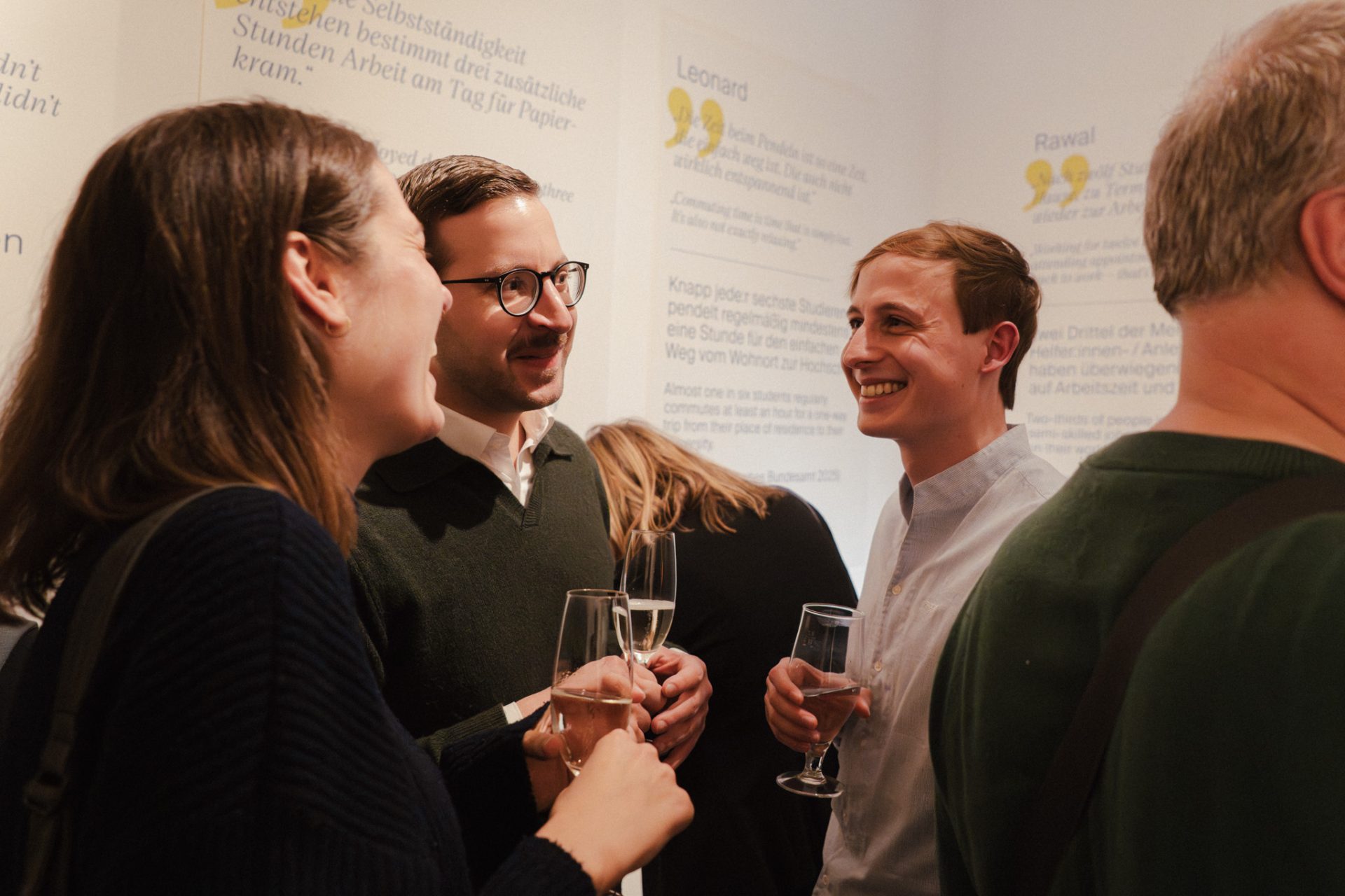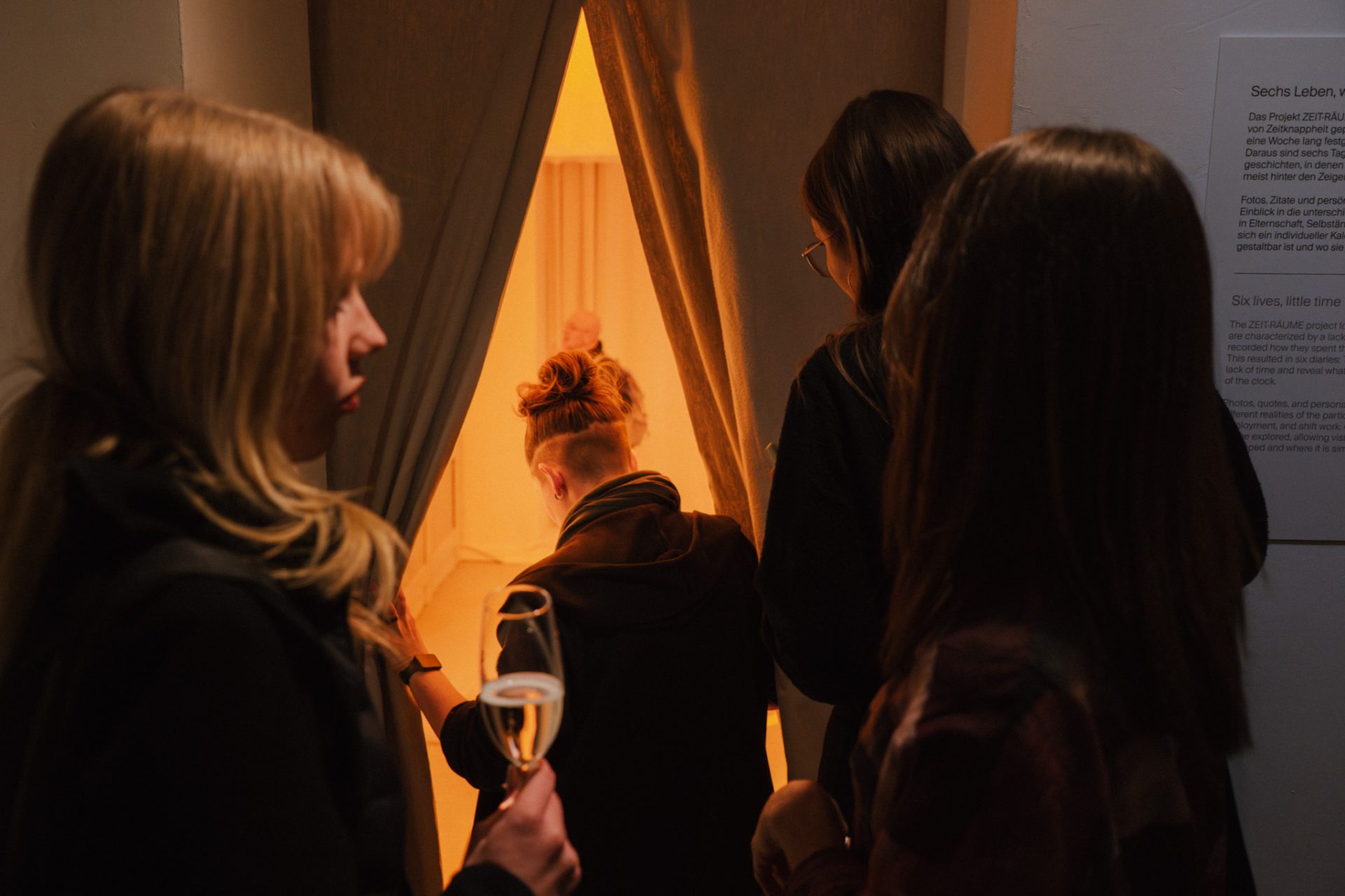 Am 22. Januar versammelten sich über 100 Gäst:innen aus Bereichen wie Kultur, Zivilgesellschaft und Politik zur Vernissage – und es wurde schnell klar, dass das Thema einen Nerv trifft. Die Gespräche reichten weit über die üblichen Debatten um Arbeitszeiten oder das Rentenalter hinaus. Sie kreisten darum, wieso Zeit so wenig besprochen wird, welche Aspekte oft im Verborgenen bleiben und wie ein neuer Umgang mit Zeit aussehen könnte, individuell und gesellschaftlich.