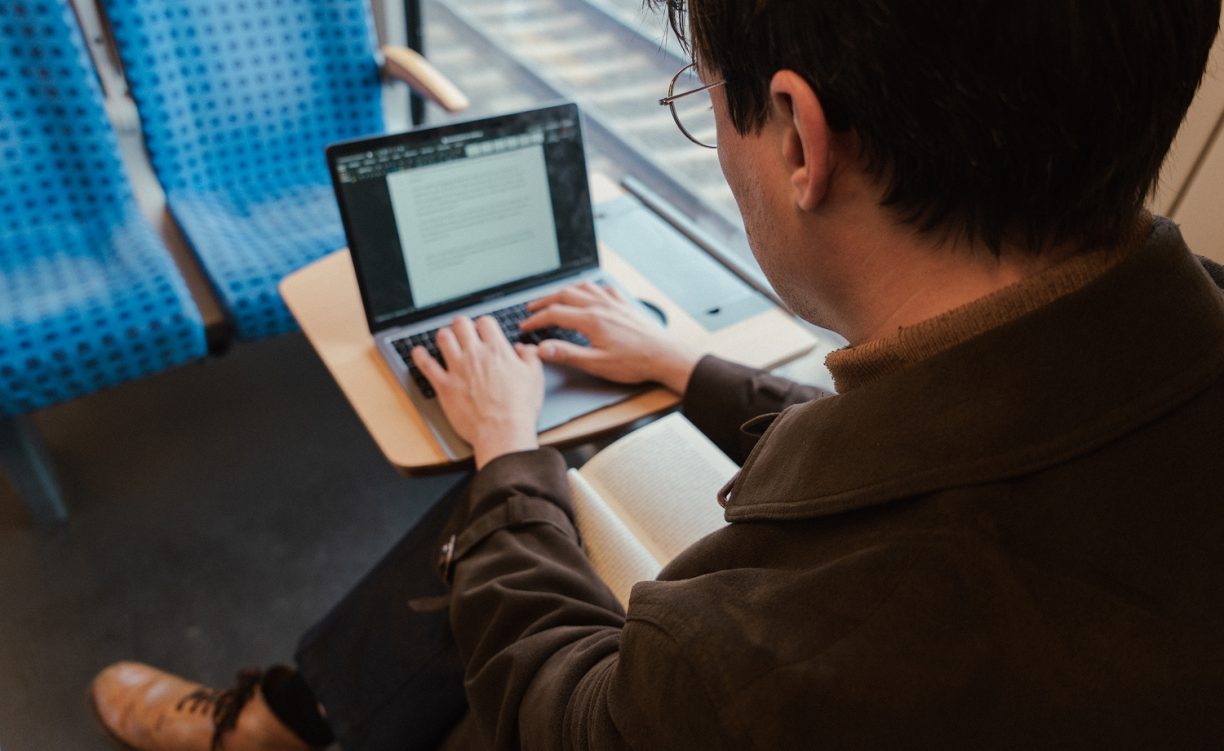 Im Zug klappt Leonard den Laptop auf und arbeitet an Texten für die Uni. Zwischen dem rhythmischen Rattern der Schienen findet er überraschend gut in den Fokus. Bevor das Praktikum im Landtag in Magdeburg beginnt, nutzt er die Fahrt, um Gedanken zu ordnen und ein Stück Arbeit hinter sich zu bringen.