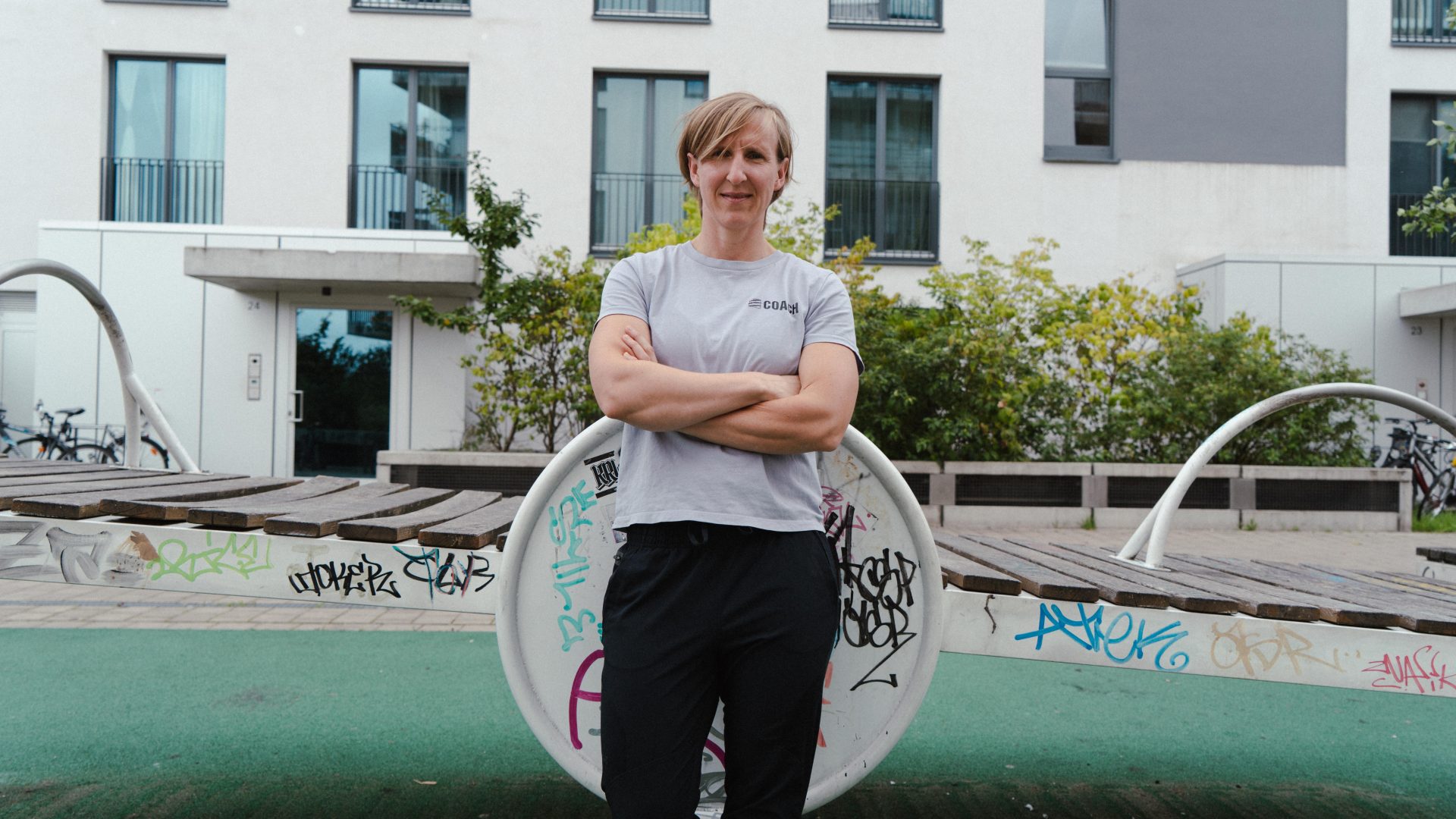 Elli Dekarz, 40 Jahre, arbeitet seit mehr als 10 Jahren selbstständig im Fitness-Bereich – erst als Freelancerin, jetzt mit einem eigenen Fitness-Studio in Berlin-Schöneberg. Aktuell baut sie ein zweites Studio auf. Früher hat Zeit für sie keine Rolle gespielt, gearbeitet wurde solange, wie es nötig war. In der Anfangszeit ihres eigenen Studios kam es auch mal vor, dass sie im Büro auf einer Matratze geschlafen hat. Seit sie eine Frau und zwei Kinder hat, ist das anders. Jetzt müssen Job, Care-Arbeit und Privatleben irgendwie unter einen Hut passen.